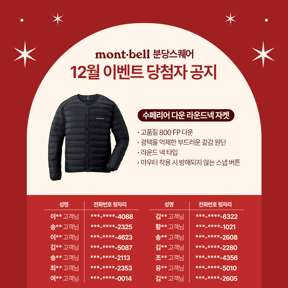몽벨 분당스퀘어 12월 이벤트 당첨 고객님들의 명단을 공개합니다!