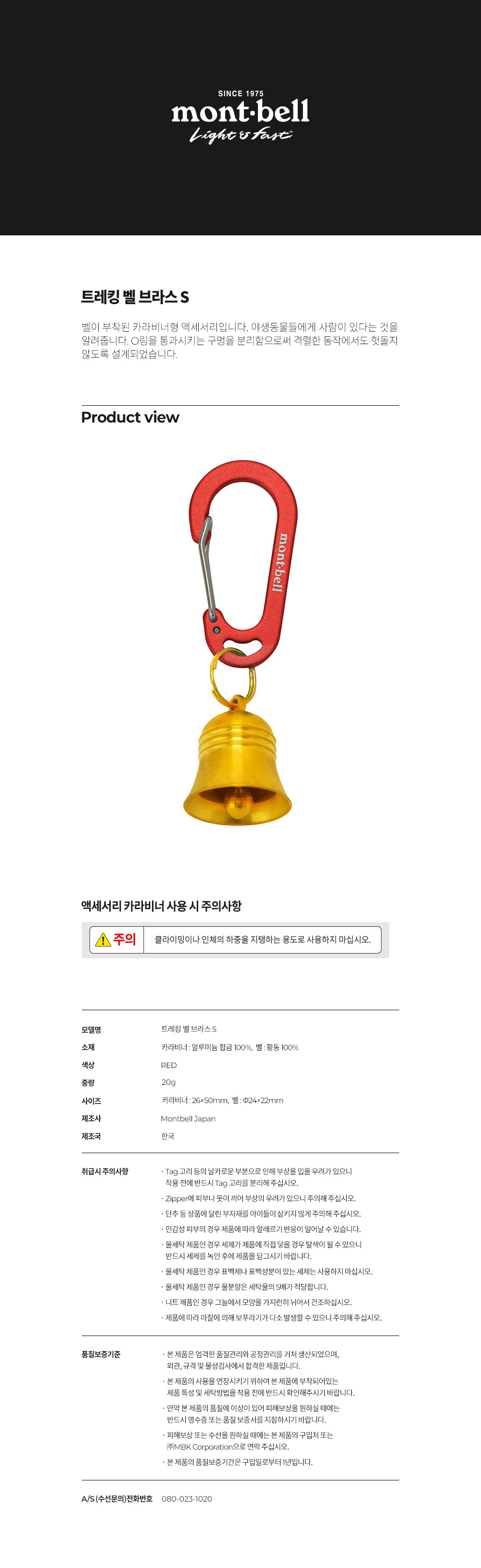 카라비너 모양의 액세서리로 벨이 결합되어 있는 상품입니다.