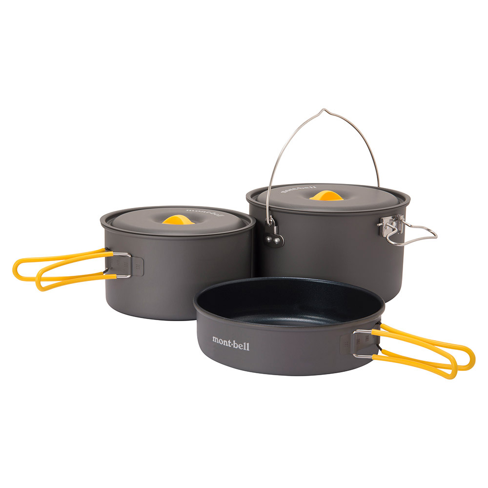 알파인 쿠커 16, 알파인 쿠커 18 세트에 알파인 프라이팬 18 딥이 포함된 세트이며 겹쳐서 컴팩트하게 수납할 수 있습니다.