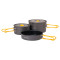 알파인 쿠커 14, 알파인 쿠커 16 세트에 알파인 프라이팬 16 딥이 포함된 세트이며 겹쳐서 컴팩트하게 수납할 수 있습니다.