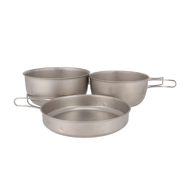 스테인리스를 넘는 강도와 알루미늄에 육박하는 가벼움을 자랑하며, 내구성과 내식성이 뛰어난 티타늄 쿡웨어입니다. 사용이 편리하고 휴대가 편리한 핸들 구조 등 아웃도어 용도로 편리한 기능을 가집니다.